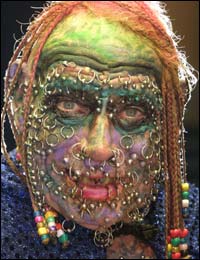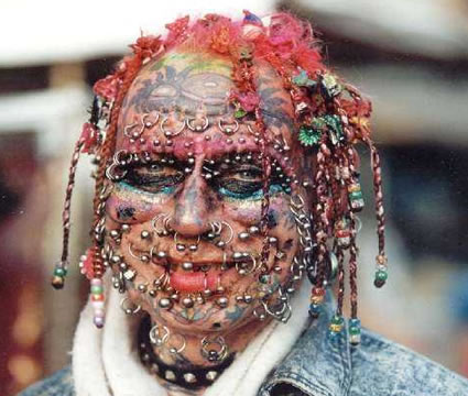If you do not think that is what civilized people look like, I agree. Then what are we to make of the fact that the last two or three generations have completely embraced this mode of “expressing” themselves, of showing the world who and what they are. It is the mark of the age to permanently mar one’s skin with scars, pigments, designs, and writing and to have bits of metal piercing every imaginable part of the body, including, the ears, tongue, nose, lips, eye brows, navel, nipples, and genitals. “The average age for the first tattoo is 14. The youngest tattoo enthusiast … encountered was eight.”